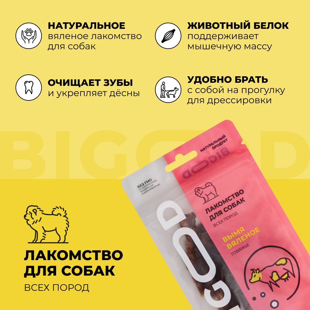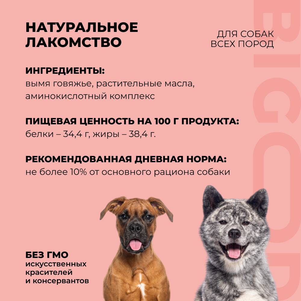 BIGOOD Вяленое вымя говяжье– это 100% натуральное вяленое лакомство для собак всех пород. При изготовлении используется метод мягкой и бережной сушки для сохранения всех полезных веществ, витаминов, микро и макроэлементов, натурального вкуса.