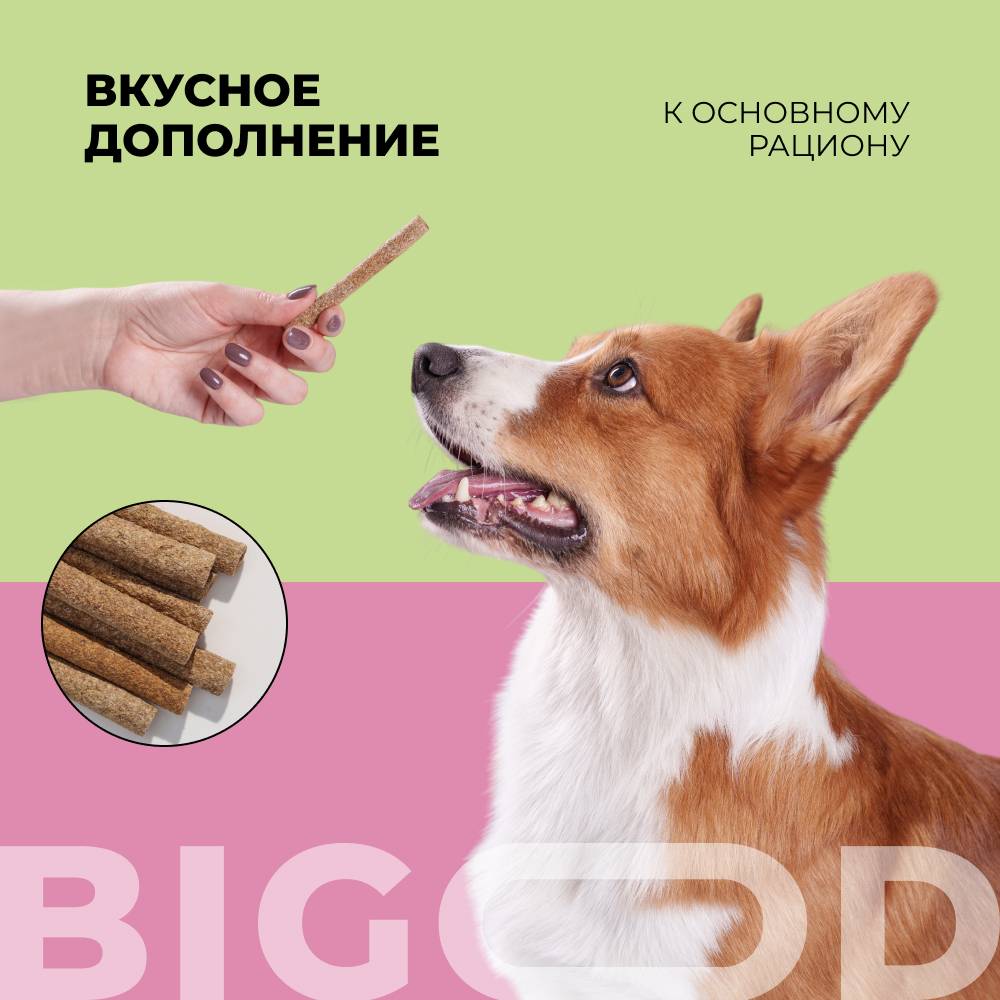 - Вкусное лакомство удобно брать с собой на прогулку для дрессировки.