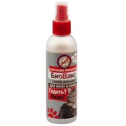 Спрей для кошек "Гадить? Нет!" 180 мл производства Биовакс способствует простому и быстрому отучению питомцев справлять гигиенические потребности мимо горшка. Обладает специфическим запахом, который отталкивает питомцев и заставляет обходить обработанный участок стороной. Не вызывает негативного воздействия на здоровье любимца, в составе лишь натуральные компоненты.