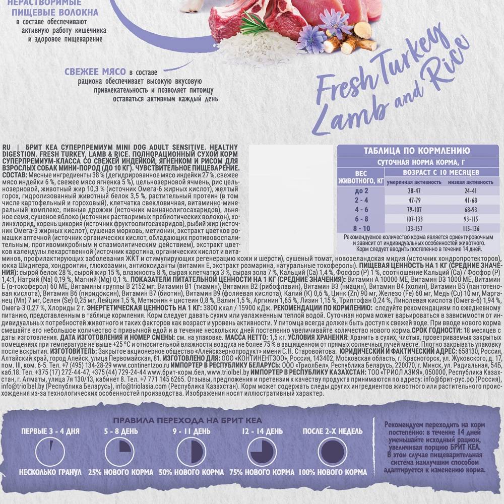- Содержит свежую индейку, ягненка и рис для легкого усвоения и поддержания здоровья пищеварительной системы.