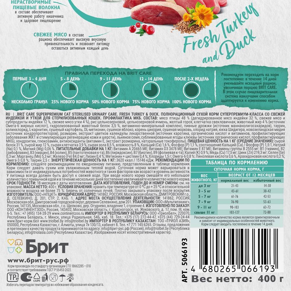 Полнорационный сухой корм суперпремиум-класса с индейкой и уткой для стерилизованных кошек. Профилактика МКБ.