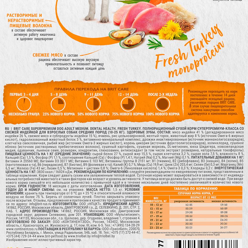 Полнорационный сухой корм суперпремиум-класса с индейкой для взрослых собак средних пород. Здоровые зубы.
