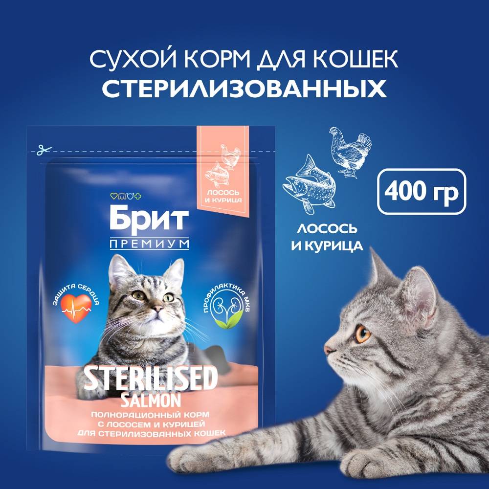 Brit Premium Cat Sterilised Сухой корм для стерилизованных кошек, с лососем и курицей, 400 гр.