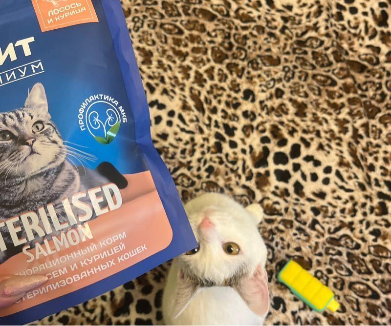 Этот корм стал заменой корма Кэтчао. Корм для стерилизованных кошек и с лососем. Кошка ест хорошо, шерсть блестит.