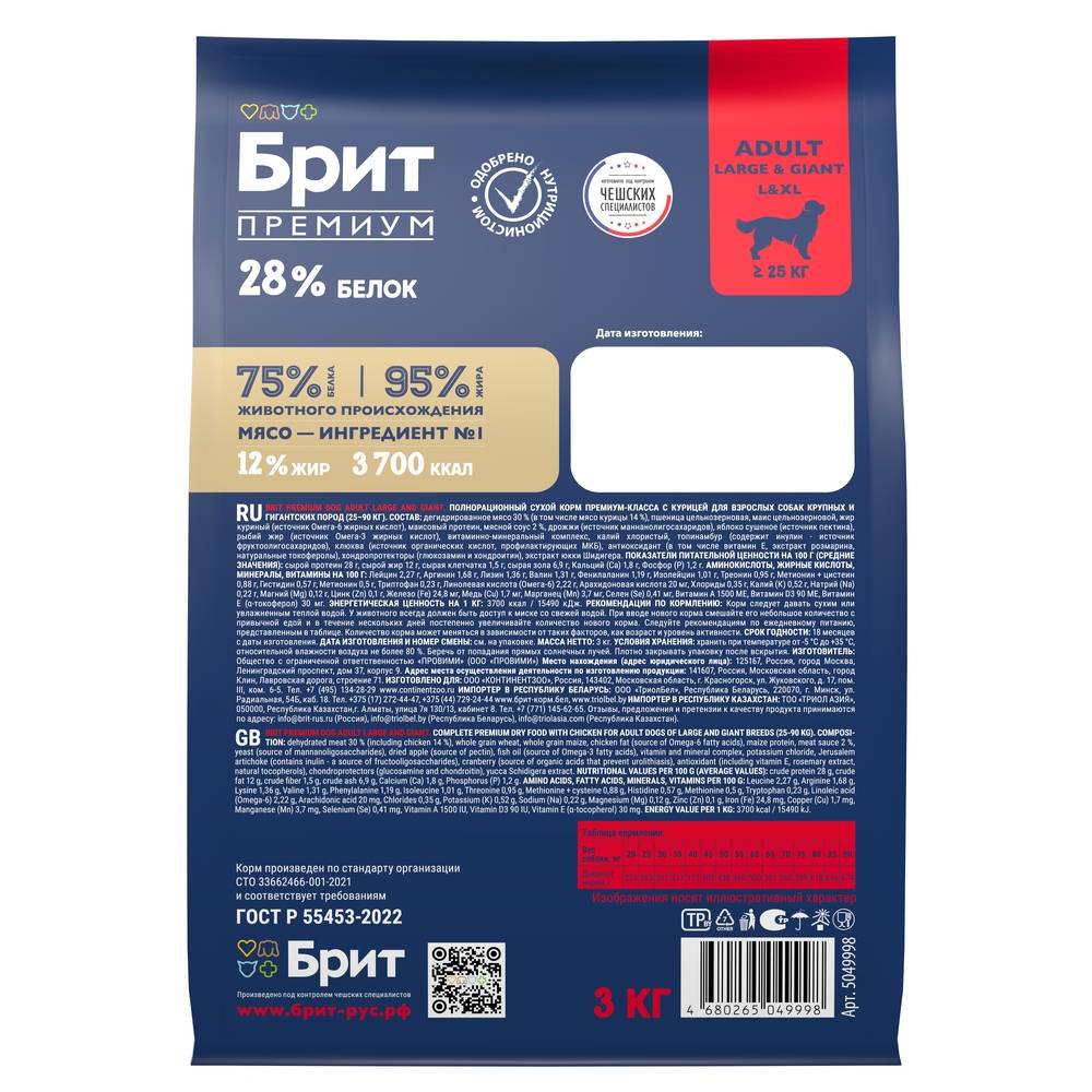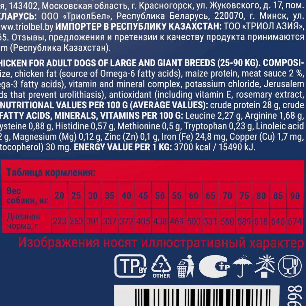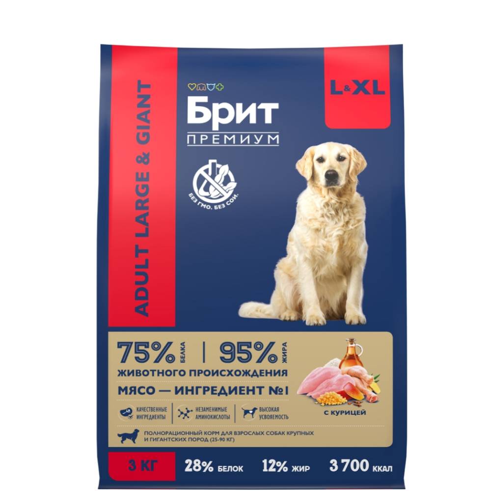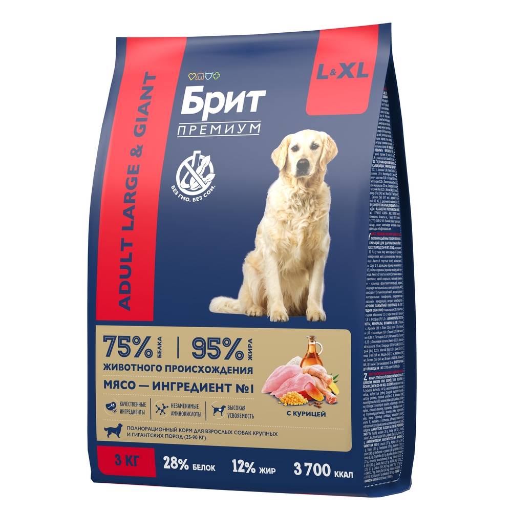 Полнорационный сухой корм премиум-класс с курицей для взрослых собак крупных и гигантских пород: 25-90 кг.
