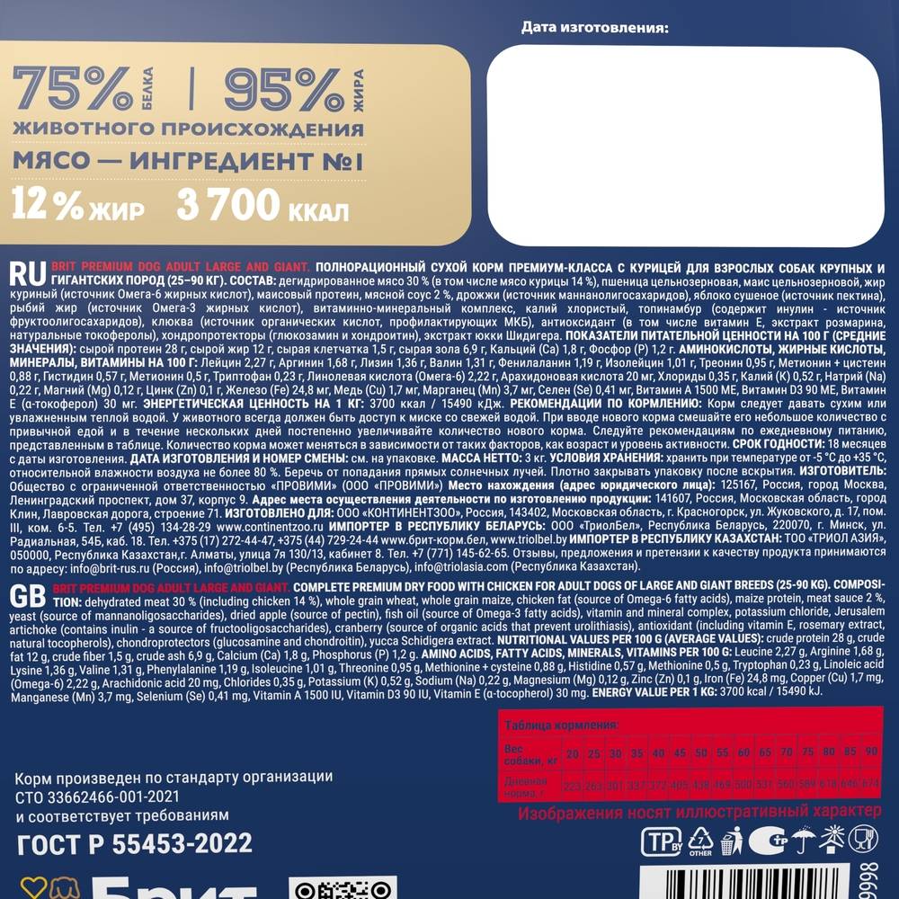 Brit Premium – корм премиум класса с высоким содержанием мяса 30%, в том числе мясо курицы 14%. Состав идеально сбалансирован и отвечает всем потребностям в зависимости от возраста и породы.