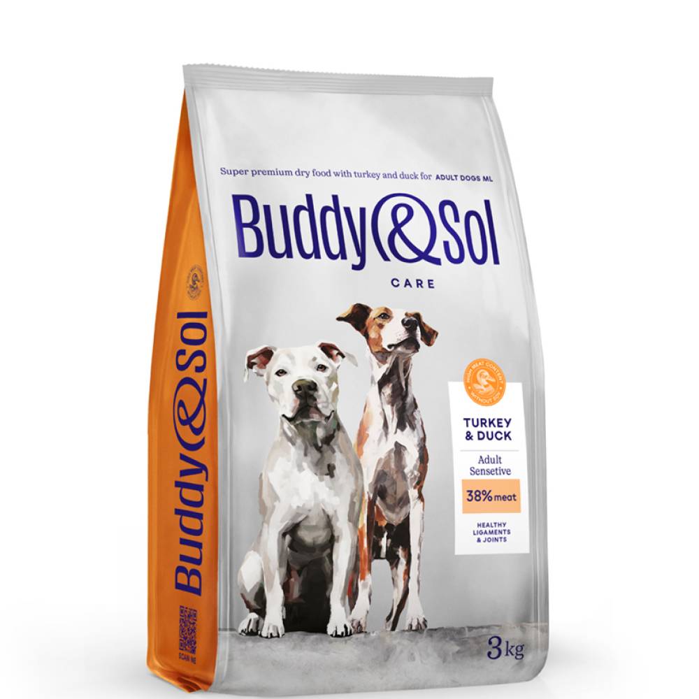 Сухой корм суперпремиум-класса Buddy&Sol Care ADULT с индейкой и уткой специально разработан для собак средних и крупных пород с чувствительным пищеварением.