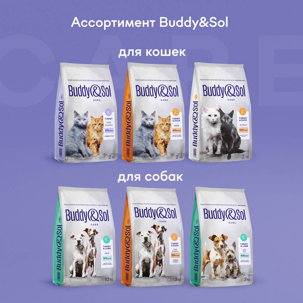 Сухой корм суперпремиум-класса Buddy&Sol Care STERILIZED с индейкой и говядиной специально разработан для взрослых стерилизованных кошек.