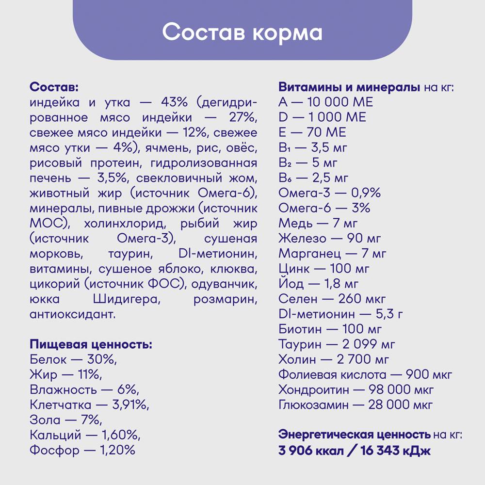 Грамотно подобранное сочетание ингредиентов и современная технология производства обеспечивают непревзойденные пищевые свойства корма, который специально разработан для удовлетворения потребностей домашних любимцев.