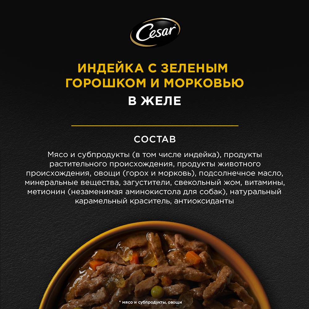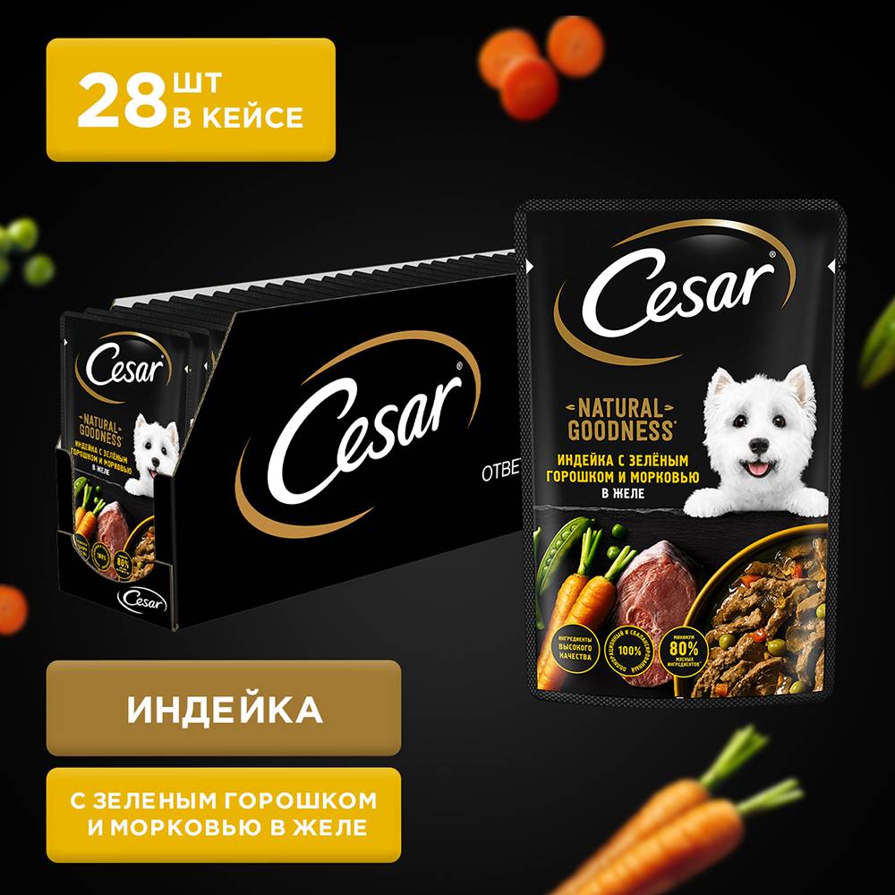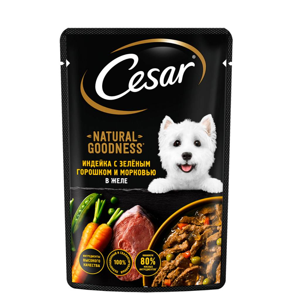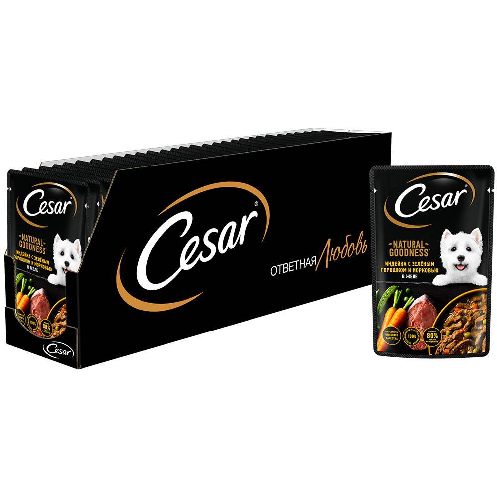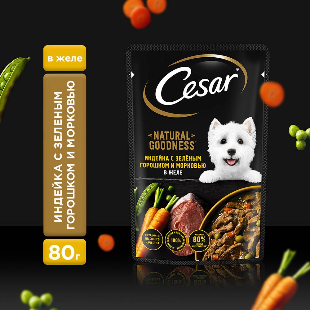 Влажный корм Cesar® Natural Goodness для взрослых собак, с индейкой, горохом и морковью в желе, 80 г.