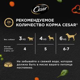 Рекомендуемое количество корма CESAR® (вес животного, кг – упаковок корма в сутки, шт): 3 кг – 4; 4 кг – 5; 6 кг – 6-7. Вашего питомца следует кормить кормом комнатной температуры. Не забывайте о свежей воде, которая должна быть в миске вашего питомца постоянно.отзывы