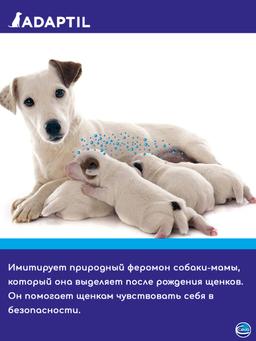 Эффективность Adaptil при хронических и острых стрессах у собак доказана клиническими испытаниями.