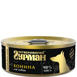 Консервированный корм Четвероногий Гурман Golden line Конина натуральная в желе для собак для всех пород собак любого возраста. Нежные кусочки мяса конины в натуральном желе обеспечивают питомца приятной сытостью на протяжении дня. В состав входят полезные вещества. Жиры и белки поддерживают здоровую форму. Жирные кислоты - улучшают состояние шерстки. Антиоксиданты - предотвращают преждевременное старение. А витамины повышают общий жизненный тонус животного.