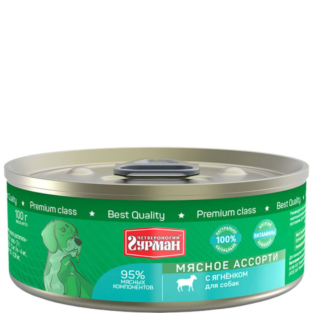 Четвероногий Гурман Влажный корм (консервы) для собак Мясное ассорти, с ягненком, 100 гр.