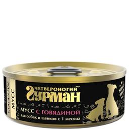 Корм консервированный для собак и щенков Четвероногий гурман “Golden line Мусс с говядиной” влажный корм суперпремиум класса, в составе которого только мясо и сливочный соус. Такое сочетание придает корму неповторимый вкус и привлекательную кремовую текстуру. Благодаря этому консервы хорошо поедаются и легко усваиваются, а при добавлении их в другой корм – улучшают поедаемость и усвояемость всего рациона.