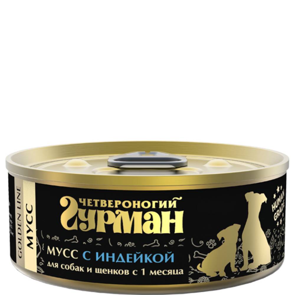 Корм консервированный для собак и щенков Четвероногий гурман “Golden line Мусс с индейкой”.