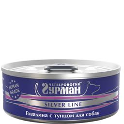 Четвероногий Гурман Silver line Влажный корм (консервы) для собак, с говядиной и тунцом, 100 гр.