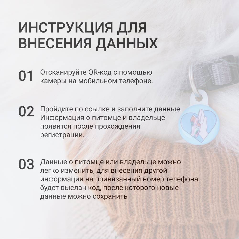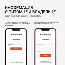 - У каждого адресника есть свой QR-код для внесения данных о питомце.