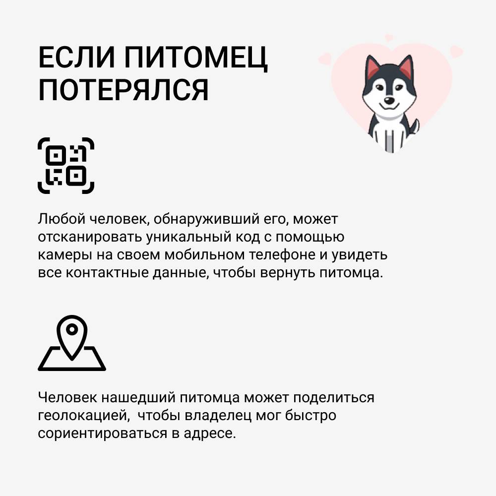 - Адресник поможет связаться с пет-родителем потерявшегося домашнего животного.