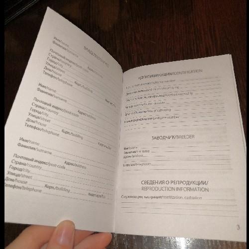 Идея для изготовителя - сделать ламинированной страницу с фото, так чтоб можно было первое фото щенок или котенок и фото взрослого после приклеивания заламинировать. В целом в данном паспорте есть всё, но можно было бы добавить страницу с датой кастрации или стерилизации, иногда врачи спрашивают об этом.Комментарий