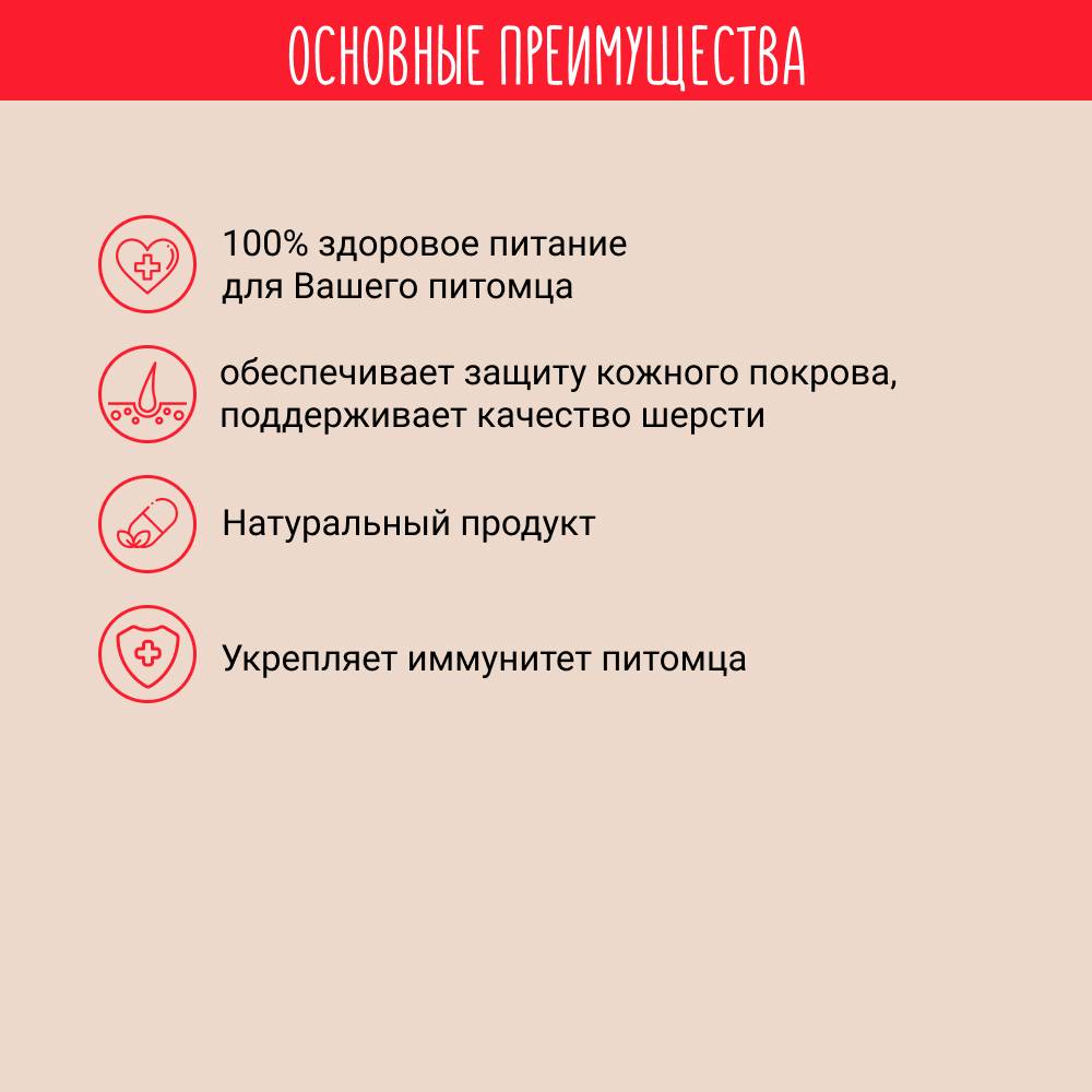 Что первое привлекает, так это состав. Цена, тоже просто подарок, как угощение, для питомца, у которых ограниченный бюджет, просто находка. Берите, не пожалеете. Рекомендую.Комментарий