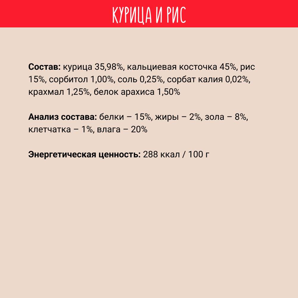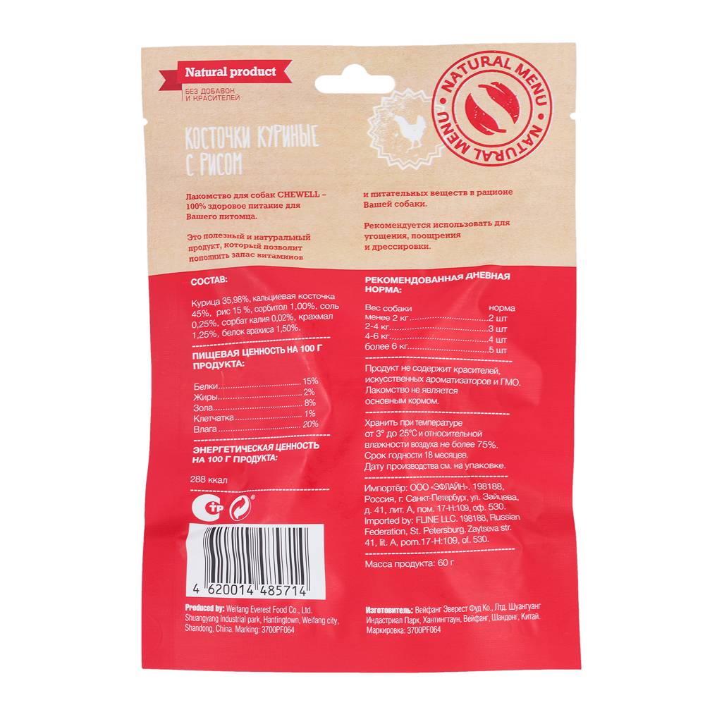 Лакомство Chewell для всех мелких пород собак. Лакомые куриные косточки с аппетитным рисом будут только в удовольствие питомцу любого возраста. Особенная методика приготовления позволяет сберечь все полезные элементы, минеральные вещества и витамины. Мясные ингредиенты помогут пополнить запас сил и энергии.