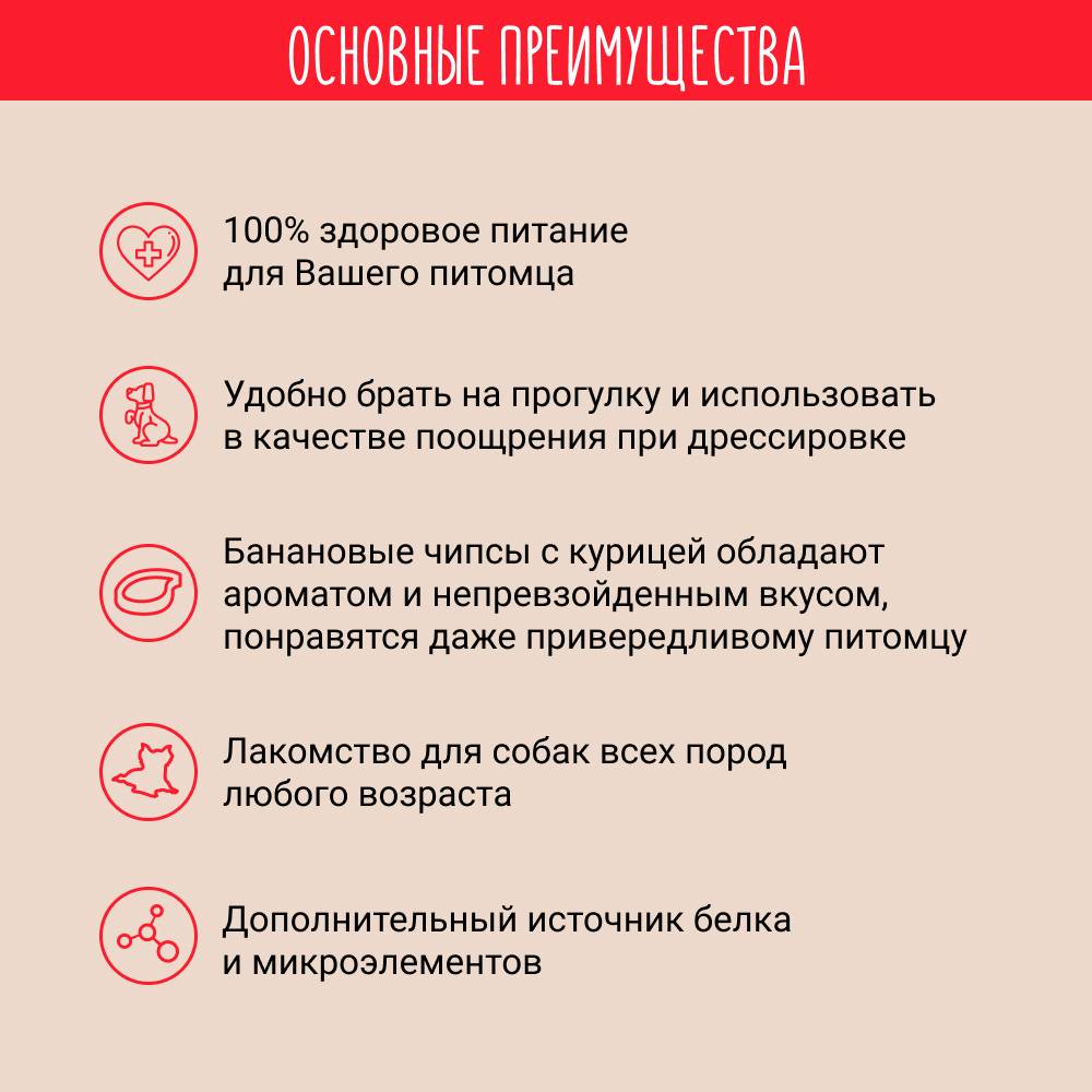 Хрустящее лакомство Chewell для всех пород собак любого возраста. Банановые чипсы с курицей обладают ароматом и непревзойденным вкусом. Он понравится даже требовательному питомцу. В состав входят жиры и белки - поддерживающие нормальную физическую форму, жирные кислоты - улучшающие состояние шерстки и кожного покрова, витамины – укрепляющие иммунитет.