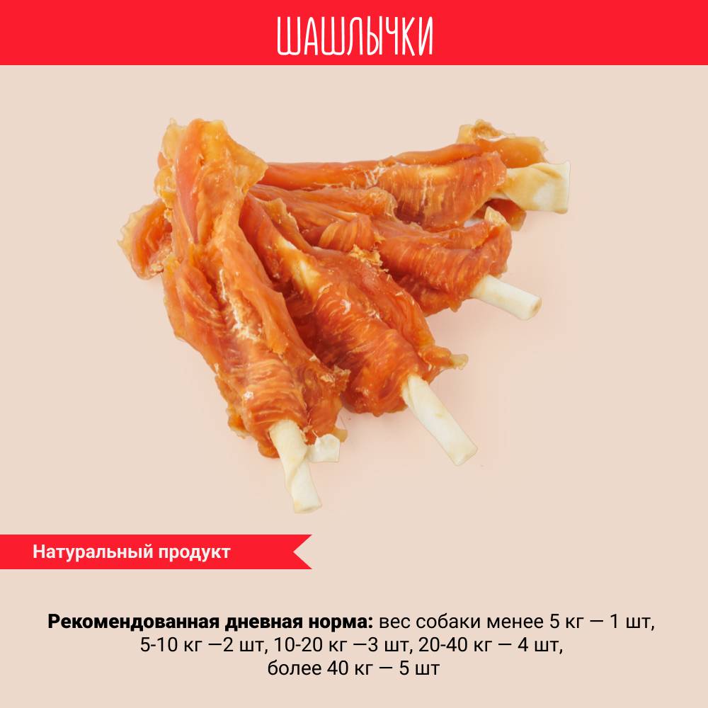 Шикарные шашлычки для собак крупных пород. Отличный состав. Косточка не крошится в мелкую муку, и не становится острой костью. Можно спокойно давать питомцу. Хватает на несколько приемов.Комментарий