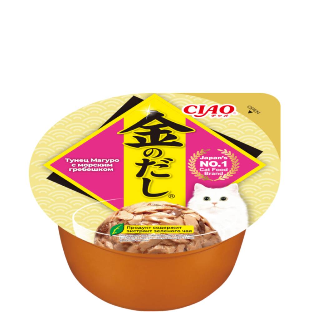 CIAO Kinnodashi cup Тунец Магуро с морским гребешком. Влажный дополнительный рацион для кошек 70 гр.