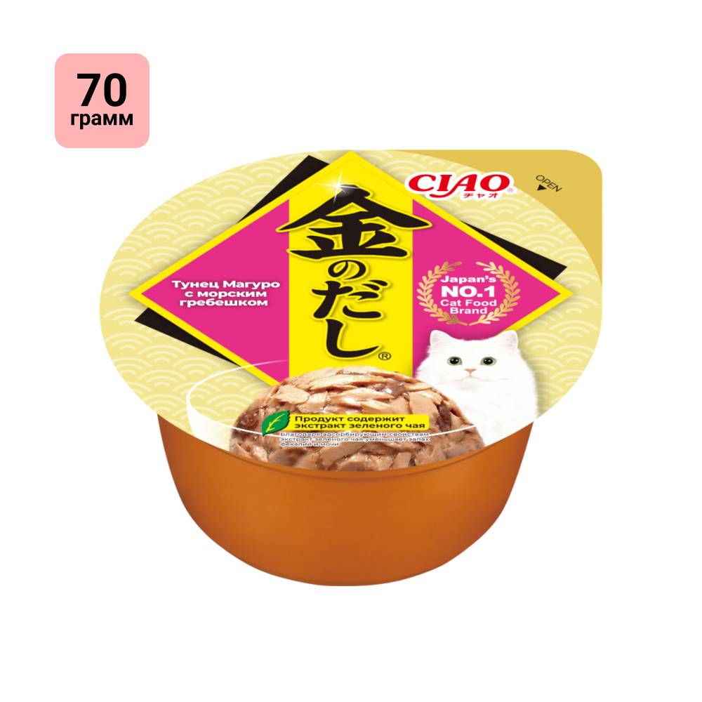 CIAO Kinnodashi cup Тунец Магуро с морским гребешком. Влажный дополнительный рацион для кошек 70 гр.