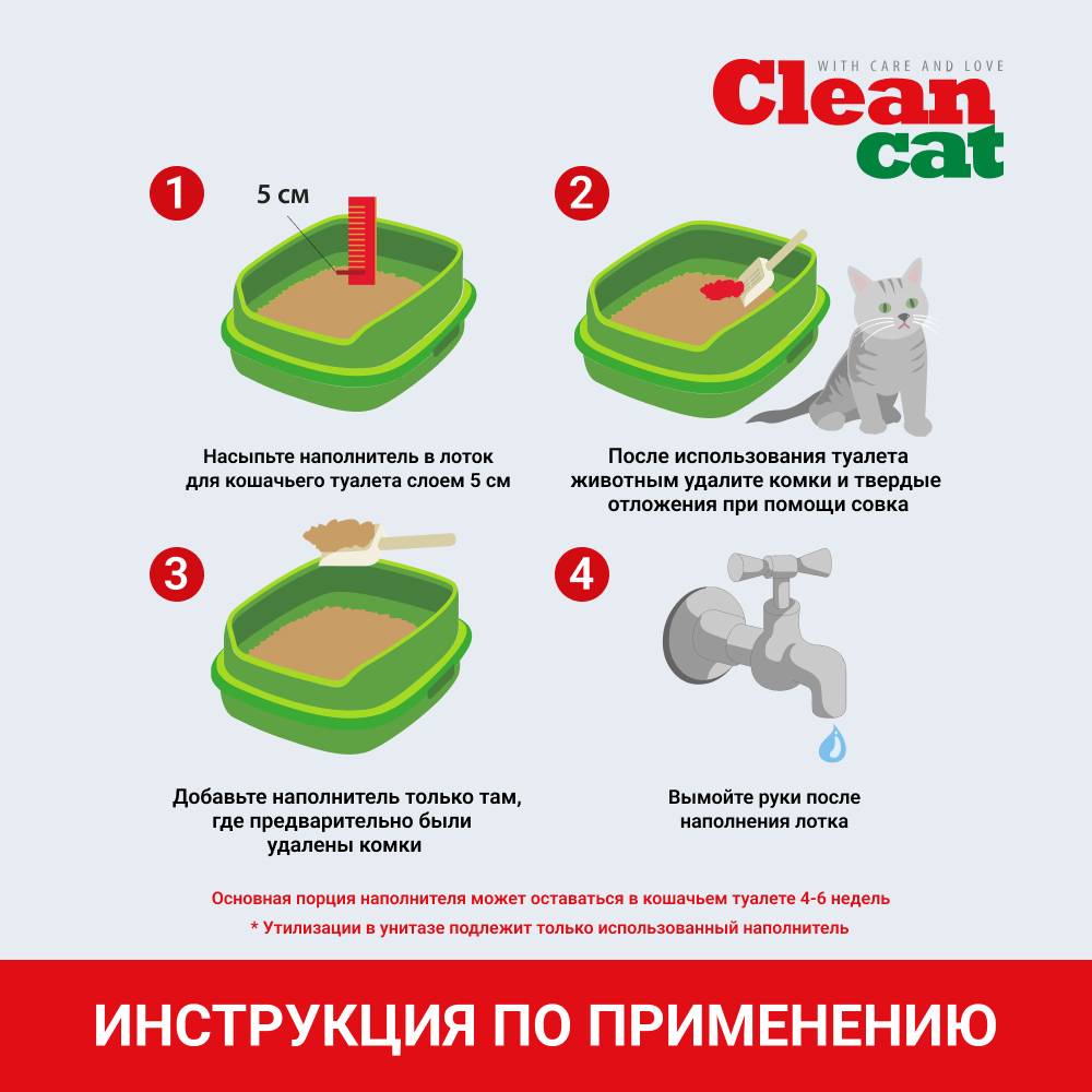 - Периодически проводите дезинфекцию лотка или кошачьего туалета, в котором используется наполнитель.