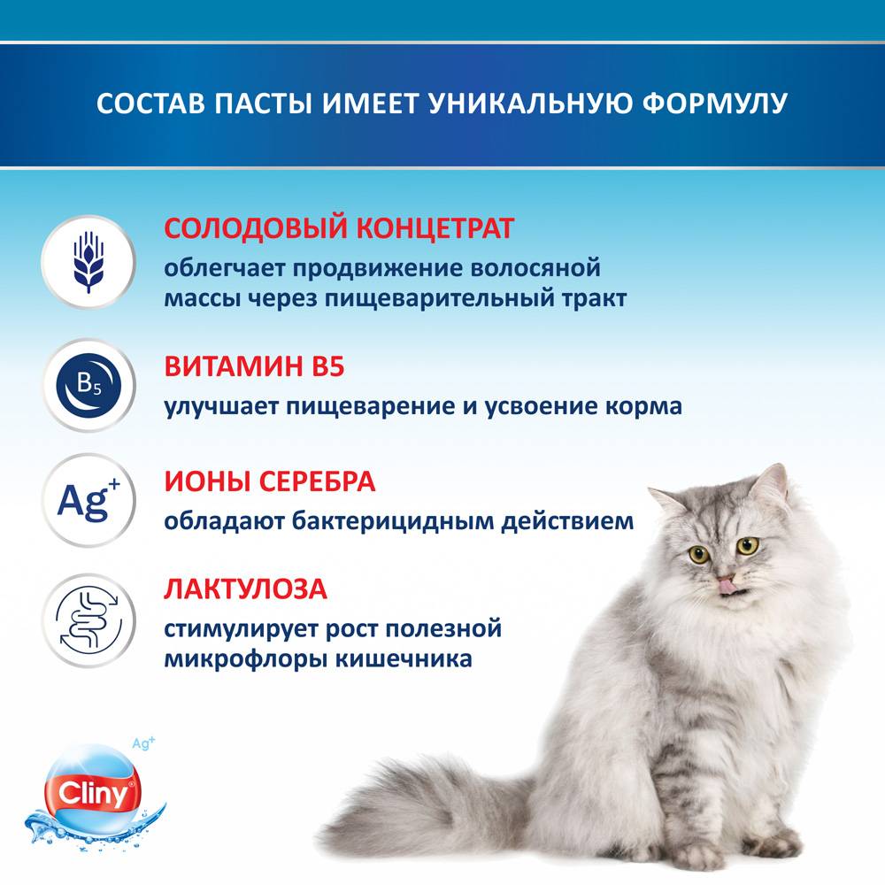 Паста для вывода шерсти Cliny обладает привлекательным для кошек вкусом и ароматом.