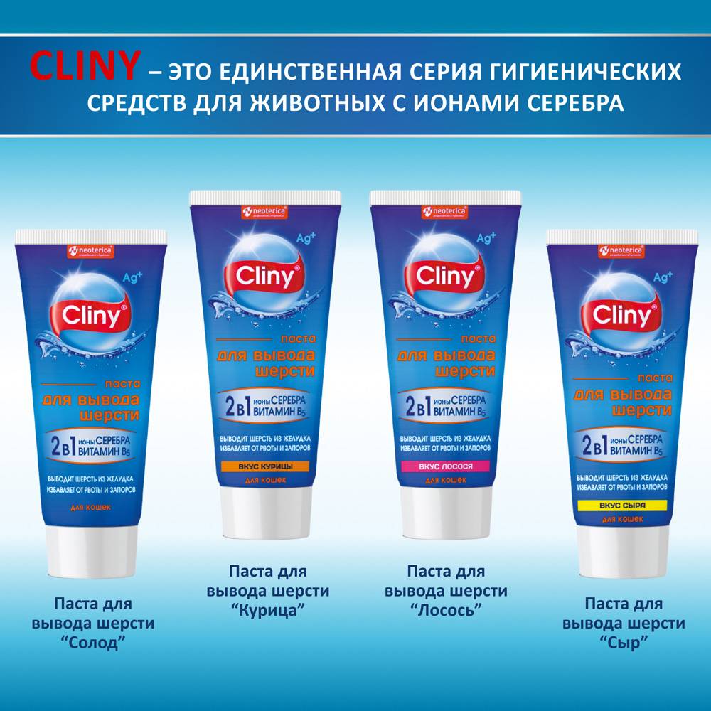 Cliny — это первая серия по уходу за животными с ионами серебра. Ионы серебра обладают мощным бактерицидным действием широкого спектра, не вызывают аллергии. Cliny — и гигиена, и профилактика болезней.