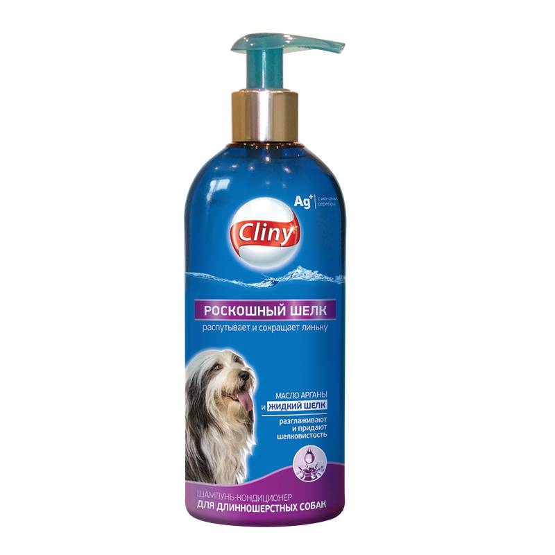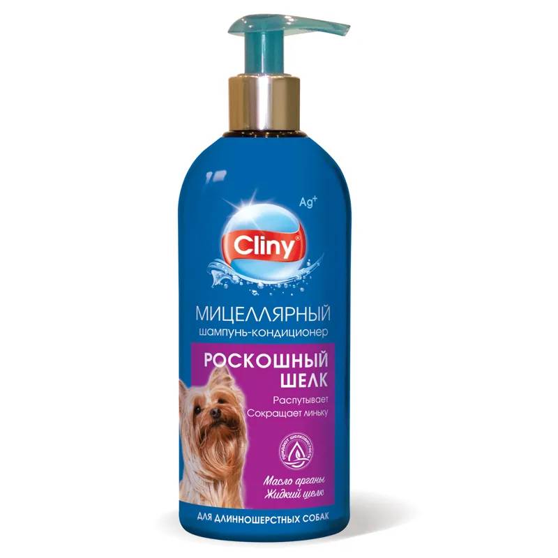 Cliny Шампунь-кондиционер распутывающий для собак с длинной шерстью облегчает расчесывание, препятствует образованию колтунов и сокращает фазу линьки.