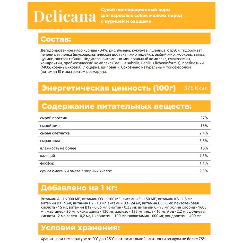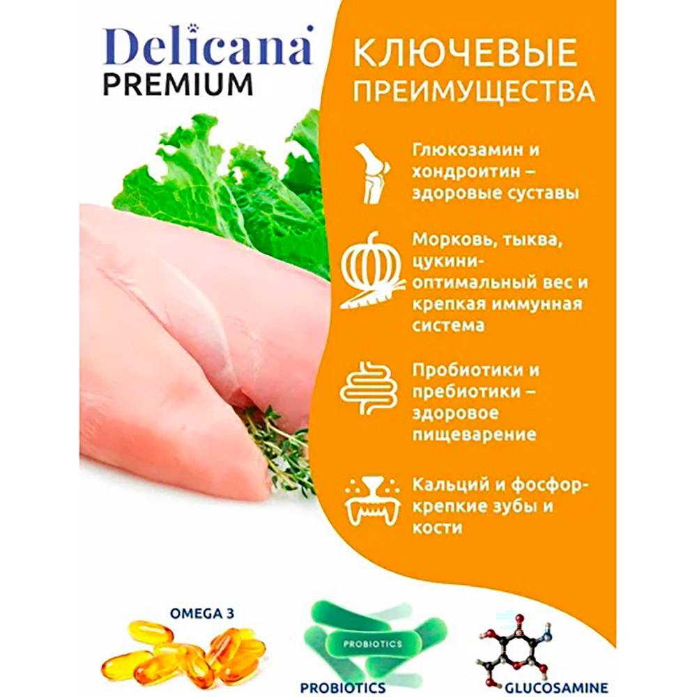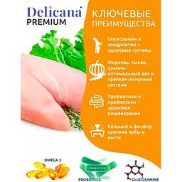 Полнорационный корм Delicana с курицей и овощами отличается высоким уровнем протеинов, которые обеспечивают необходимый запас энергии и поддержание крепкой иммунной системы.