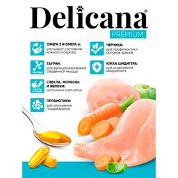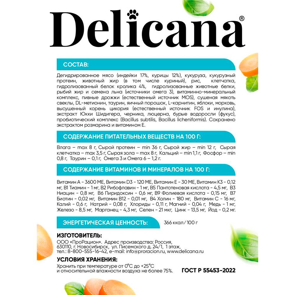 Сбалансированный, питательный и полезный корм Premium ТМ Delicana для вашего питомца, в котором идеально подобраны все ингредиенты и их соотношения, помогающие сохранить здоровье и активность вашего четвероногого друга.