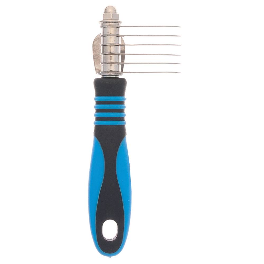 - Специальная заточка и закругленная форма лезвий обеспечивают легкое удаление колтунов, минимизируют срезание шерсти, обеспечивают максимальную безопасность.
