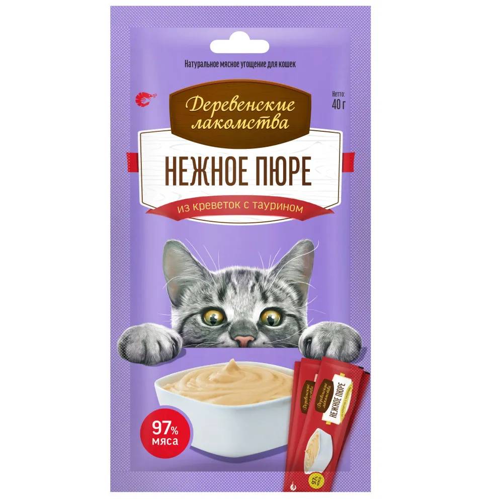 Деревенские лакомства Деревенские лакомств Лакомство Нежное пюре из креветок для кошек, 4x40 гр.