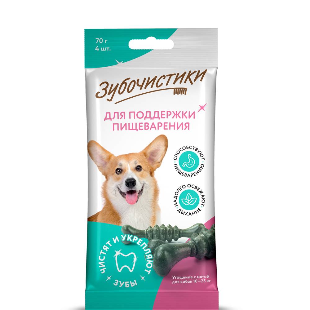 - Благодаря наличию хлорофилла Зубочистики "Мятные" улучшают усвояемость сухих кормов, поддерживают здоровую кишечную флору, активизируют выведение токсинов и усиливают иммунную систему организма.