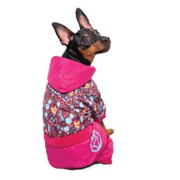 Дождевик в дизайне Железный человек выполнен из дышащего материала, который обеспечивает сухость собаки во время прогулок под дождем. Застегивается на кнопки на груди, пах открыт, комбинезон полностью закрывает тело животного, защищая его от намокания и замерзания. Капюшон по размеру для любителей комфорта.