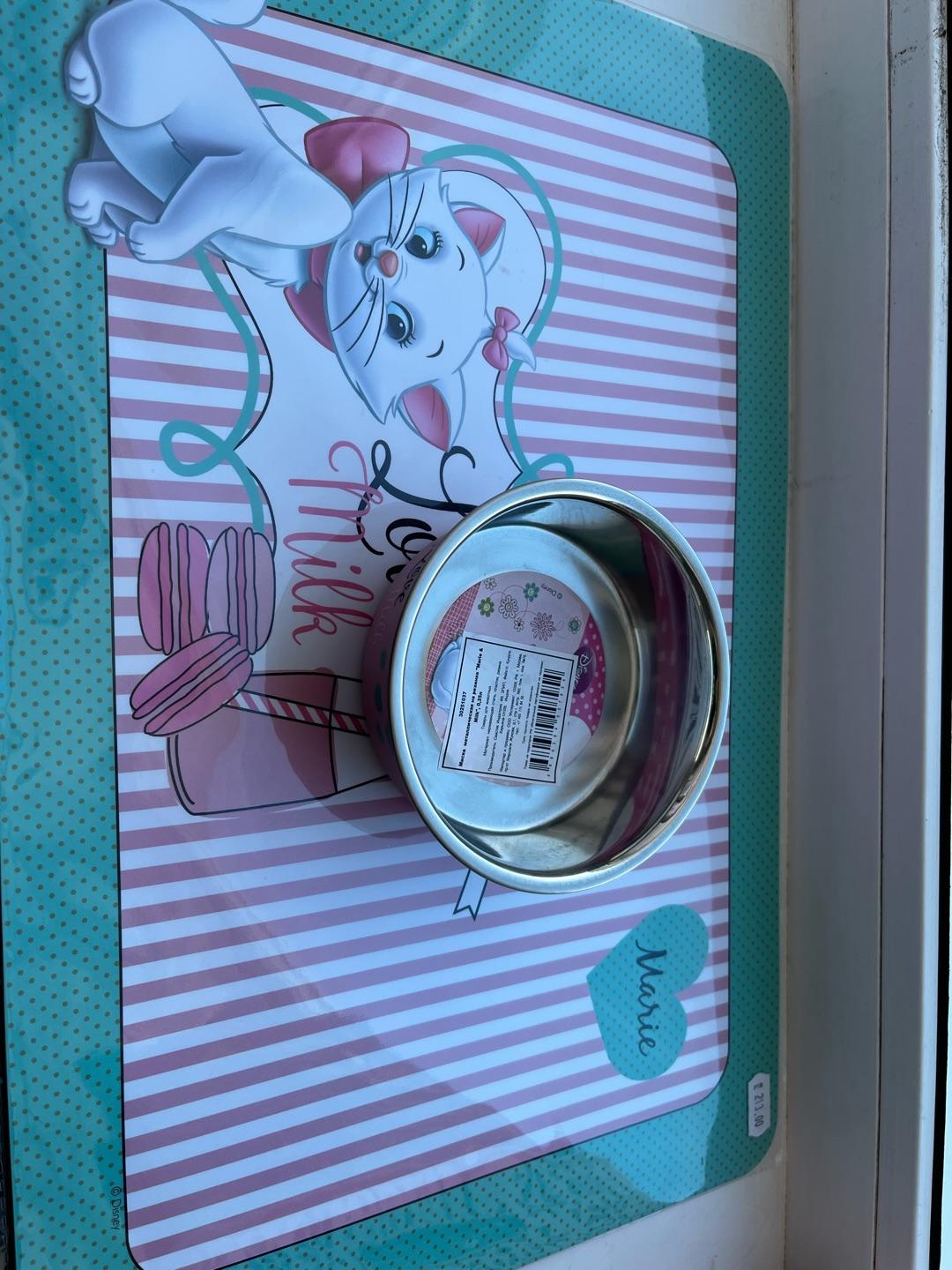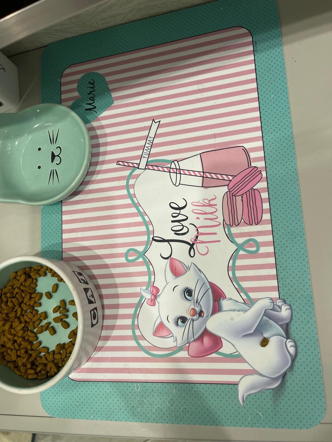Disney Коврик под миску Marie & Milk, 430x280мм изготовлен из качественного полипропилена, препятствует скольжению миски с едой или водой по полу, защищает поверхность пола от загрязнения. Яркий коврик поможет приучить питомца к месту кормления. Коврик легко очищается при помощи воды, губки и любого моющего средства.