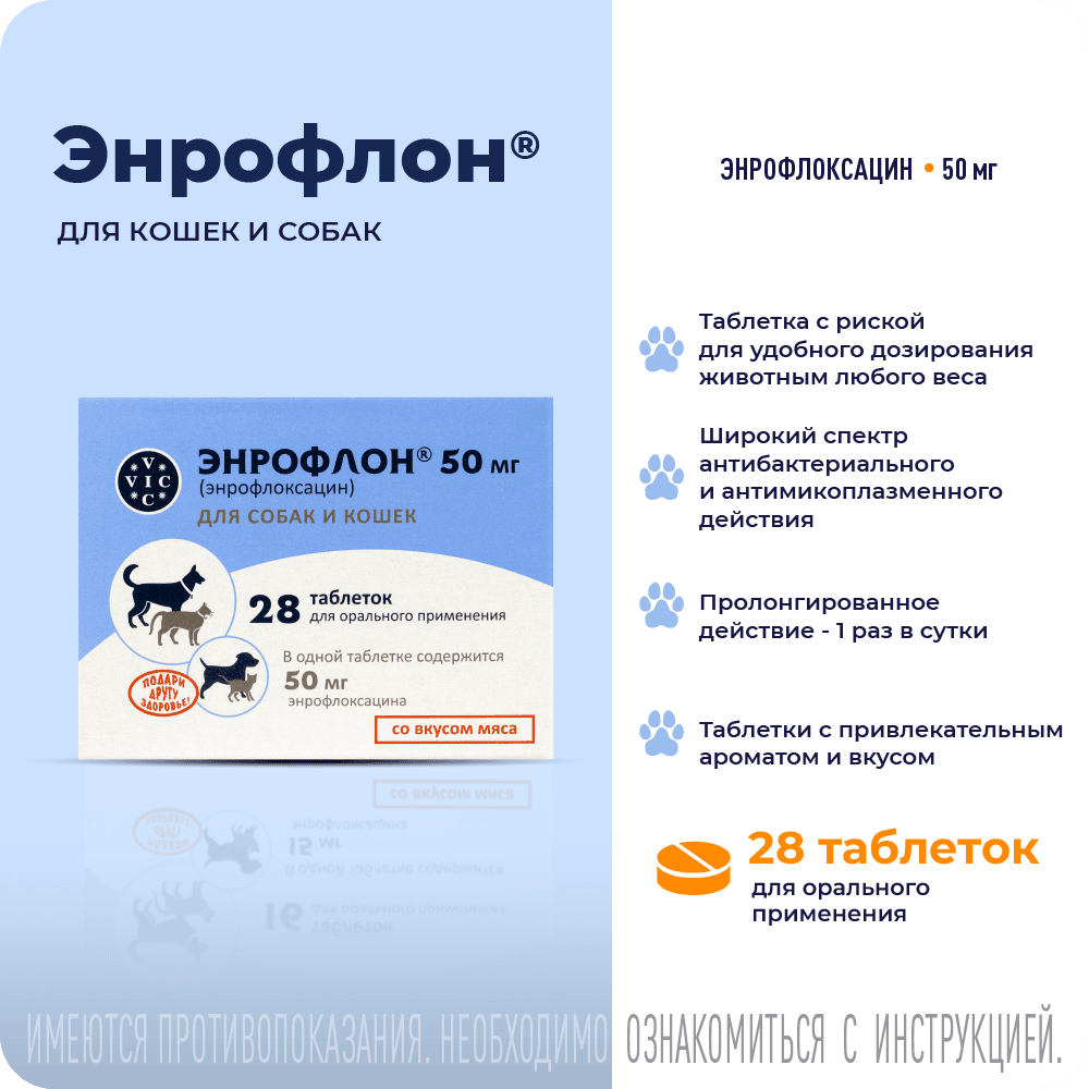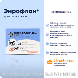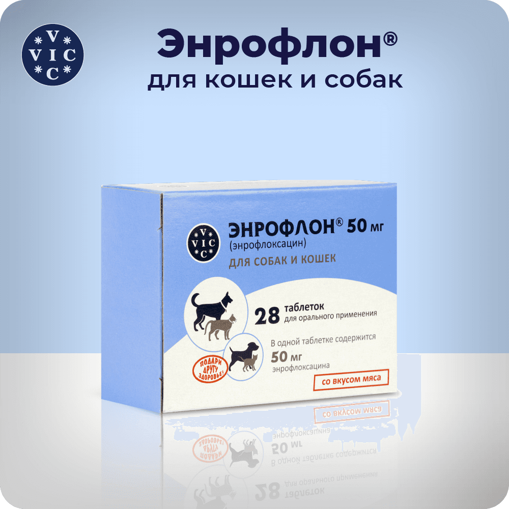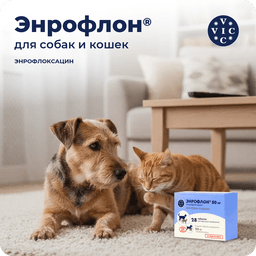 ЭНРОФЛОН® - таблетки для лечения собак и кошек при желудочно-кишечных, респираторных заболеваниях, патологии мочеполовой системы, поражении мягких тканей и кожи, отитов, инфицированных ранах и других заболеваний бактериальной и микоплазматической этиологии.