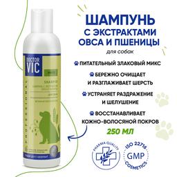 Экстракт овса, входящий в состав шампуня, обладает успокаивающим, противовоспалительным, заживляющим действием, нормализует клеточный обмен, питает, увлажняет, восстанавливает кожно-волосяной покров животного.
