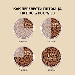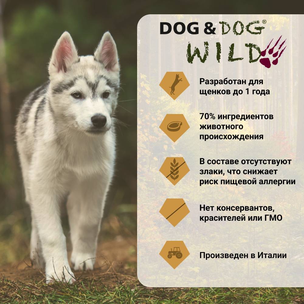 Dog & Dog WILD – линейка кормов, разработанная с учетом потребностей собак, заложенных природой. Через формулу 70%/30%/0%* корм предлагает такое же богатство и разнообразие мяса и рыбы, которые ежедневно дает природа, а также овощи, растения, ягоды и фрукты, за исключением таких компонентов, как злаки и растительные белки, которые не входят в естественный рацион собак.