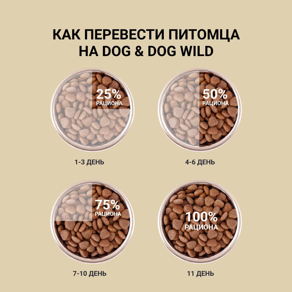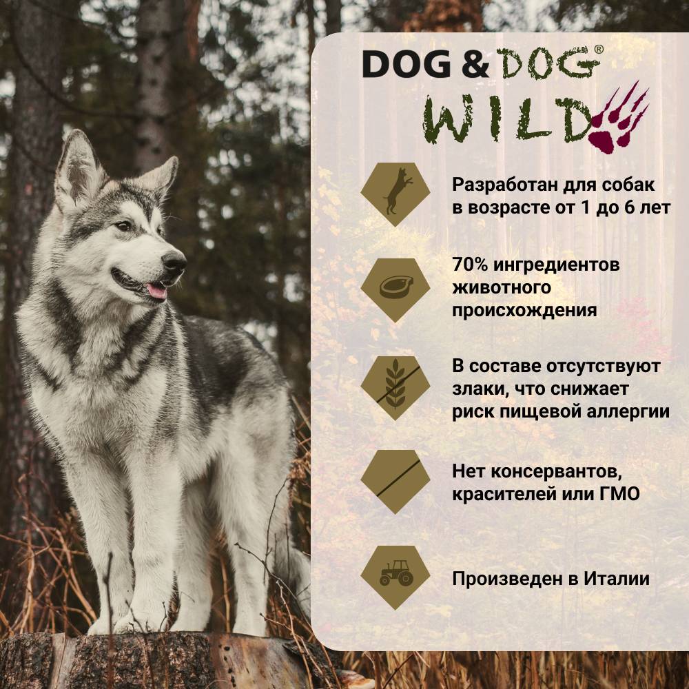 Dog & Dog WILD – линейка кормов, разработанная с учетом потребностей собак, заложенных природой. Через формулу 70%/30%/0%* корм предлагает такое же богатство и разнообразие мяса и рыбы, которые ежедневно дает природа, а также овощи, растения, ягоды и фрукты, за исключением таких компонентов, как злаки и растительные белки, которые не входят в естественный рацион собак.