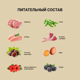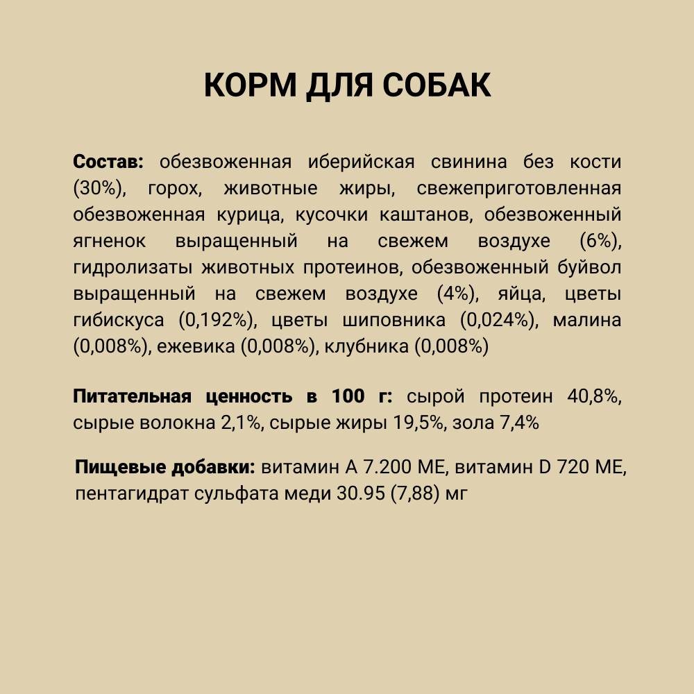 *70% – ингредиенты животного происхождения; 30% – растения, фрукты, овощи; 0% – злаки, картофель, тапиока