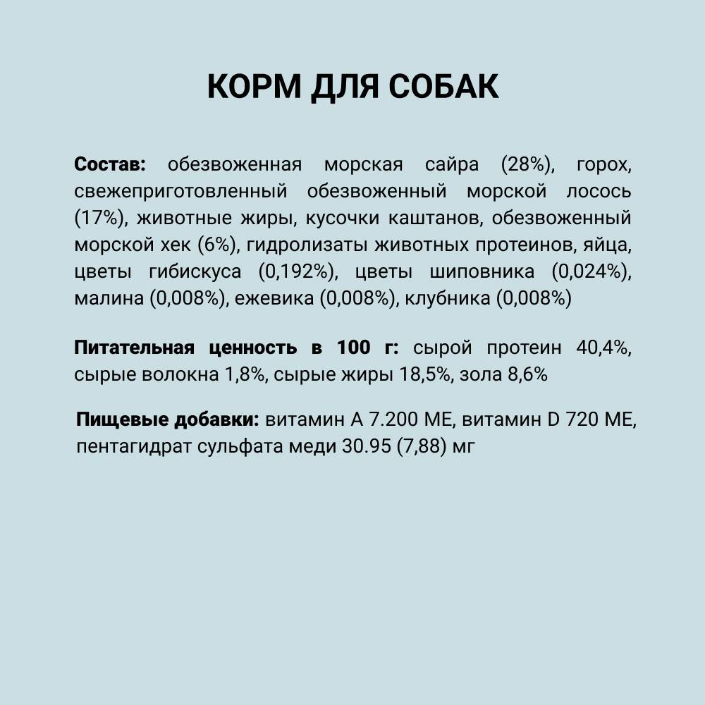 *70% –ингредиенты животного происхождения; 30% –растения, фрукты, овощи; 0% –злаки, картофель, тапиока.