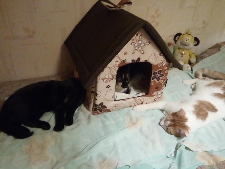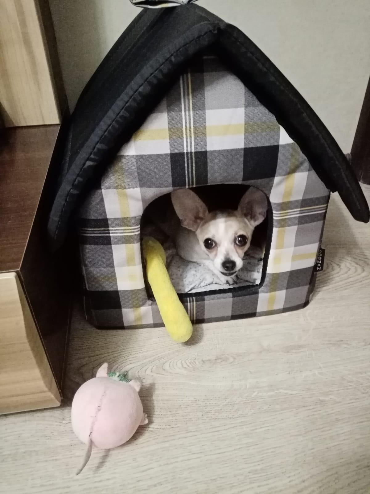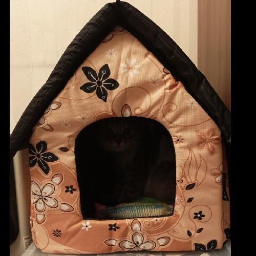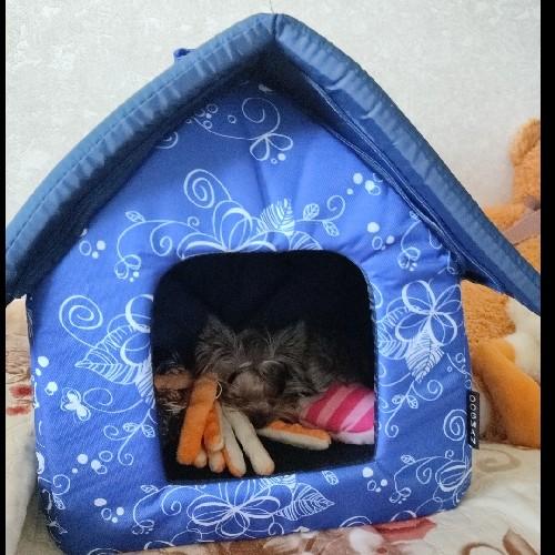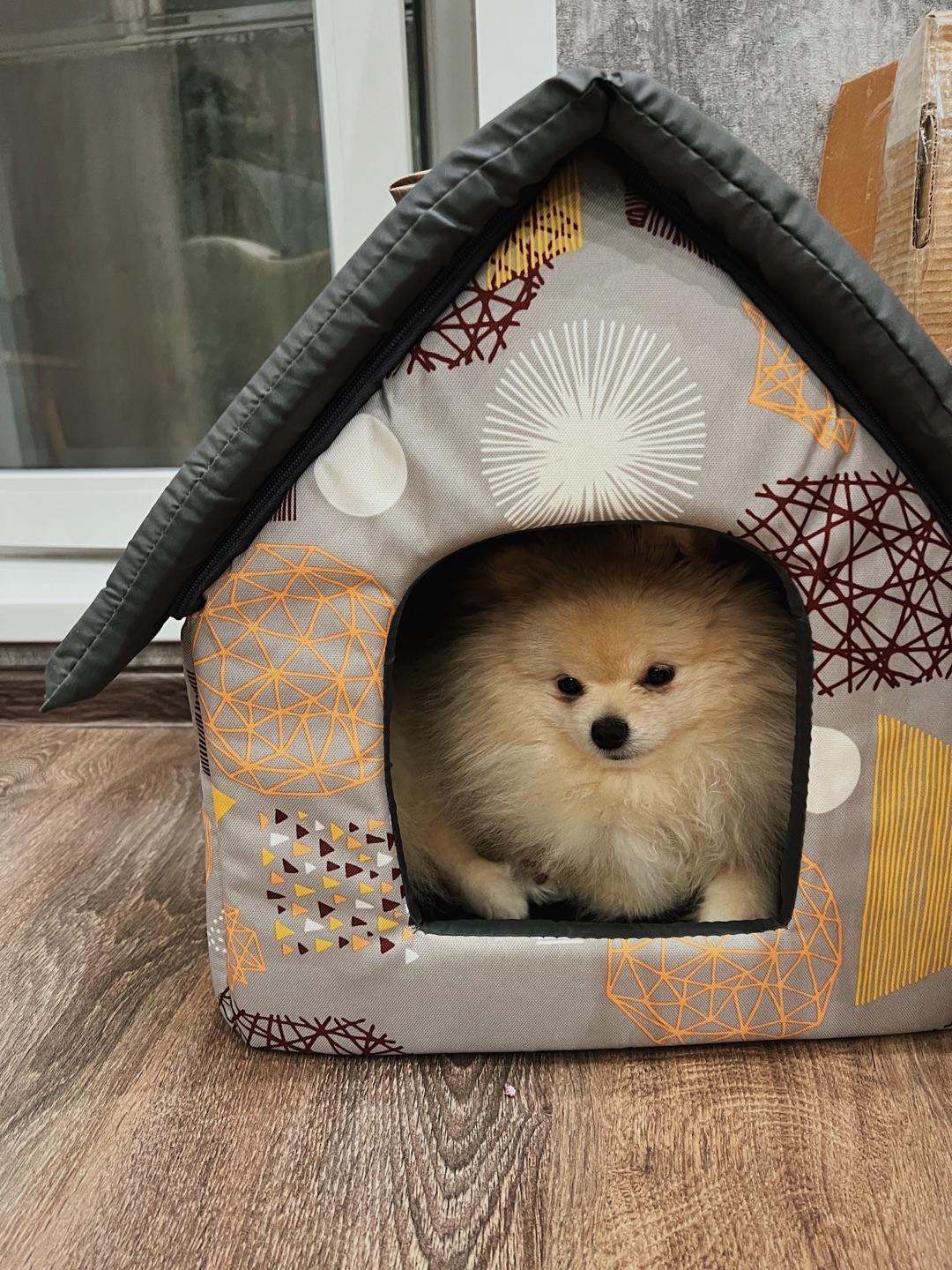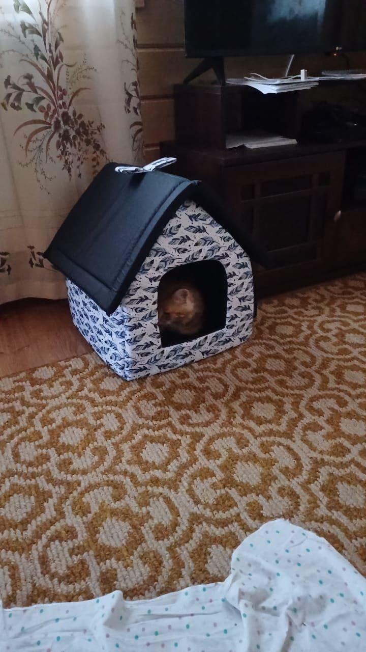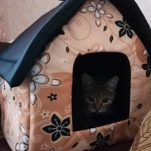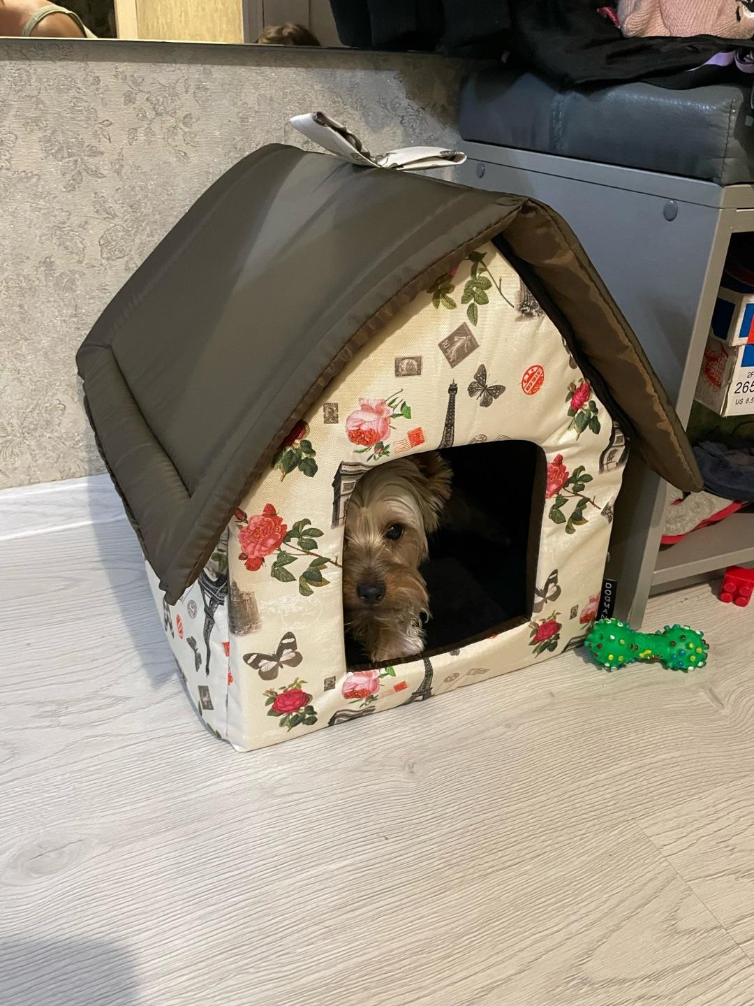 Мягкое место Микс среднего размера 35х35х39 см подойдет для маленькой собачки или кошки. Закрытая форма будки будет служить вашему питомцу местом отдыха и уединения. Будка из полиэстера и поролона с подкладкой, упрочненная спанбондом, дополнена износостойким бязевым материалом, украшена милым бантиком. Оригинальный дизайн домика станет отличным выбором для ваших четвероногих друзей.