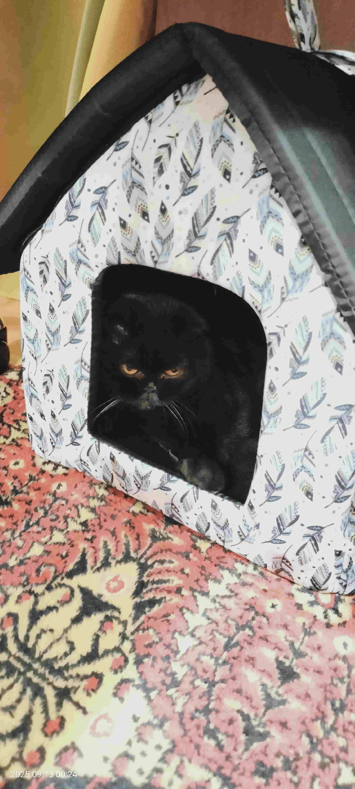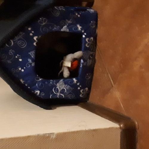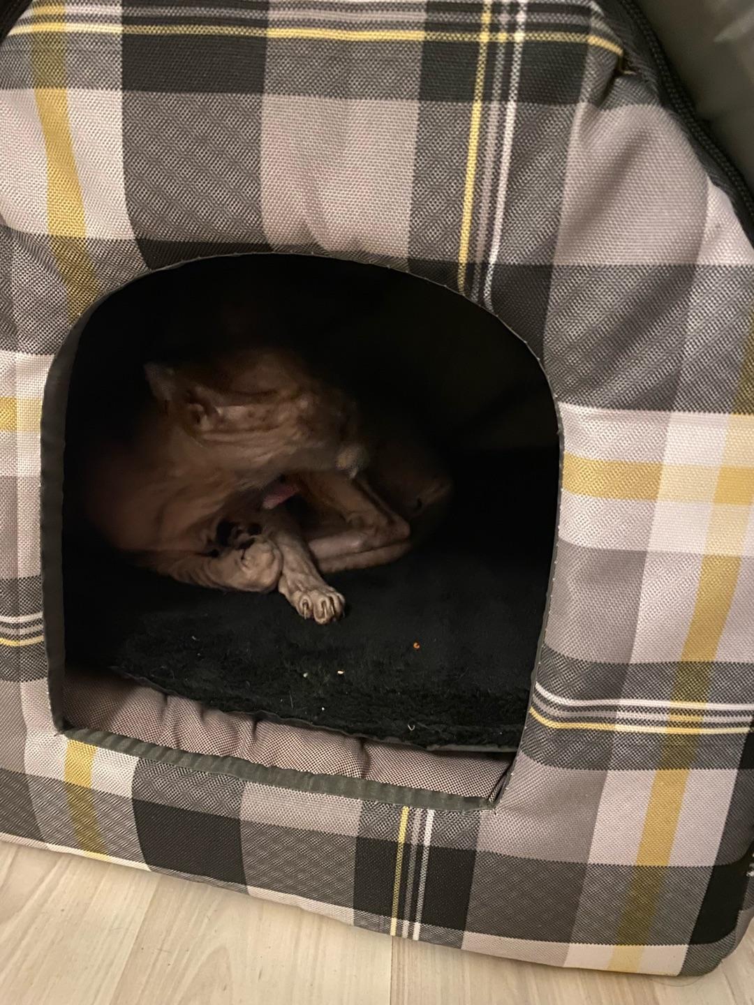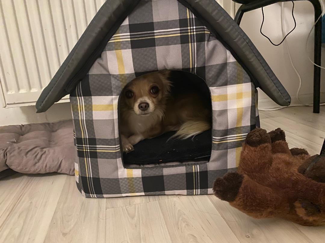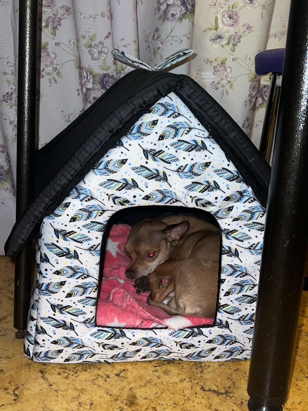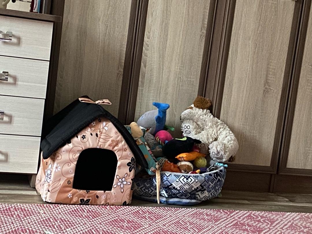 Мягкое место Микс среднего размера 35х35х39 см подойдет для маленькой собачки или кошки. Закрытая форма будки будет служить вашему питомцу местом отдыха и уединения. Будка из полиэстера и поролона с подкладкой, упрочненная спанбондом, дополнена износостойким бязевым материалом, украшена милым бантиком. Оригинальный дизайн домика станет отличным выбором для ваших четвероногих друзей.