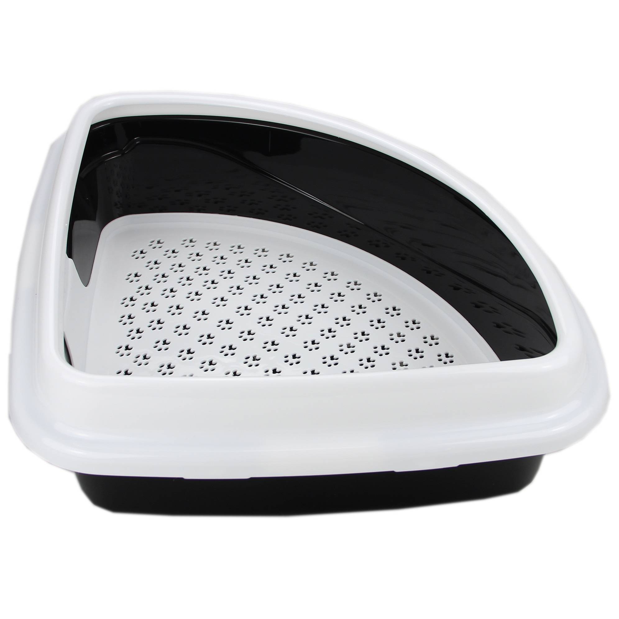 Dogman Туалет угловой для кошек Триплекс, 42х42х15 см, черно-белый